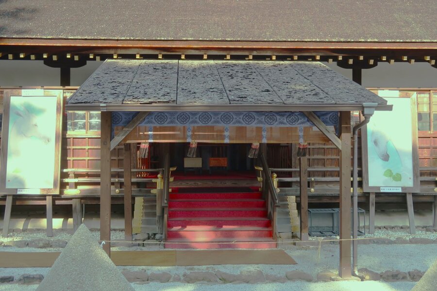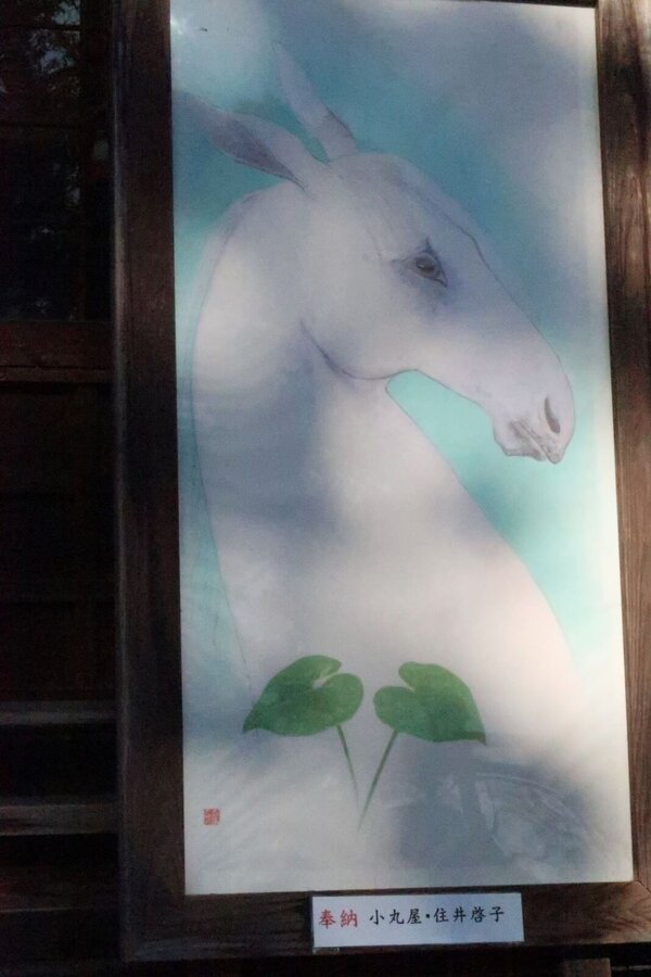 上賀茂神社の細殿の左右には、「干支の大絵馬」が対になって飾られています。日本画家・長谷川雅也氏の作品です。